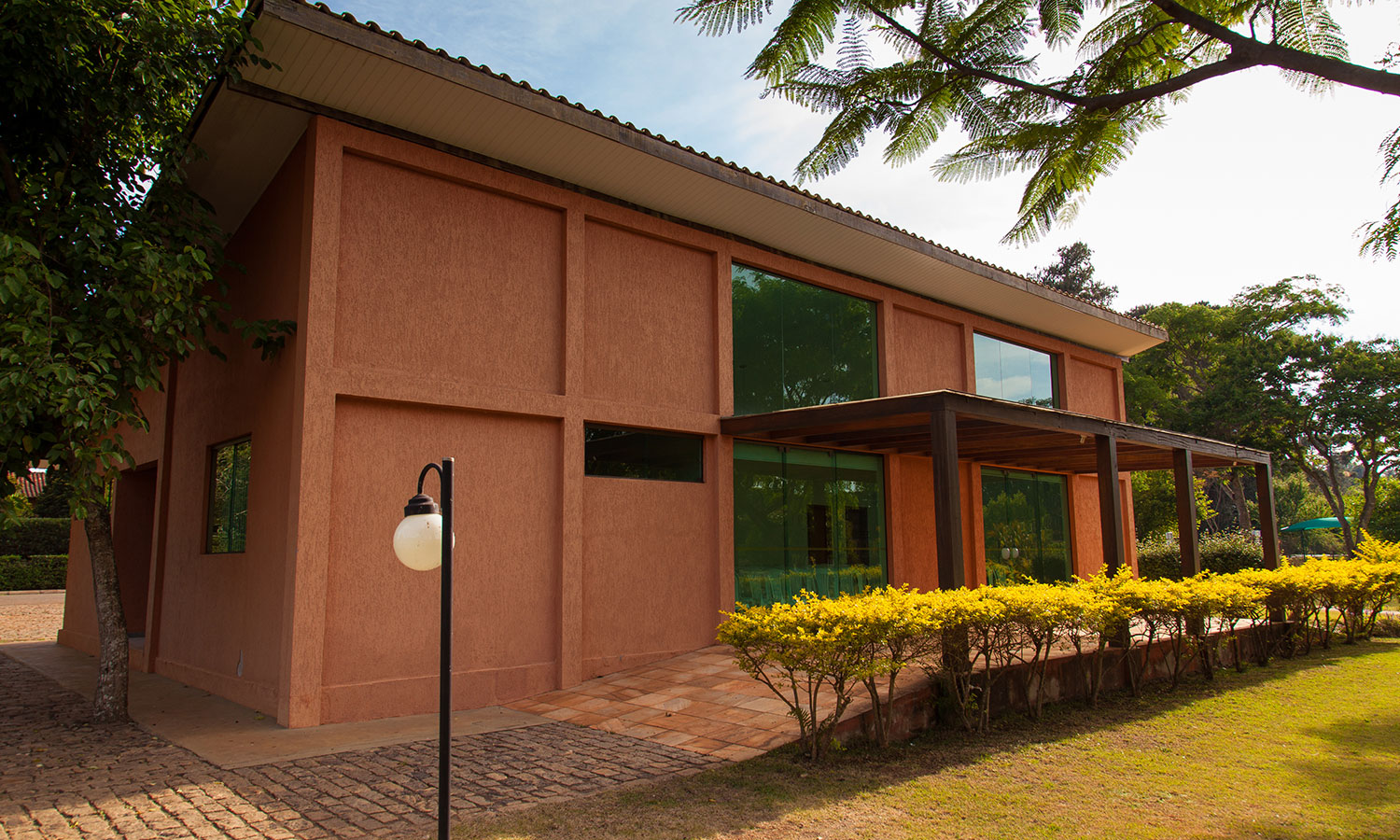 Com seu paisagismo e projeto arquitetônico únicos, a Sede Social do Morro do Chapéu Golfe Clube privilegia quem a visita com uma deslumbrante vista, tornando os momentos ali celebrados ainda mais especiais.