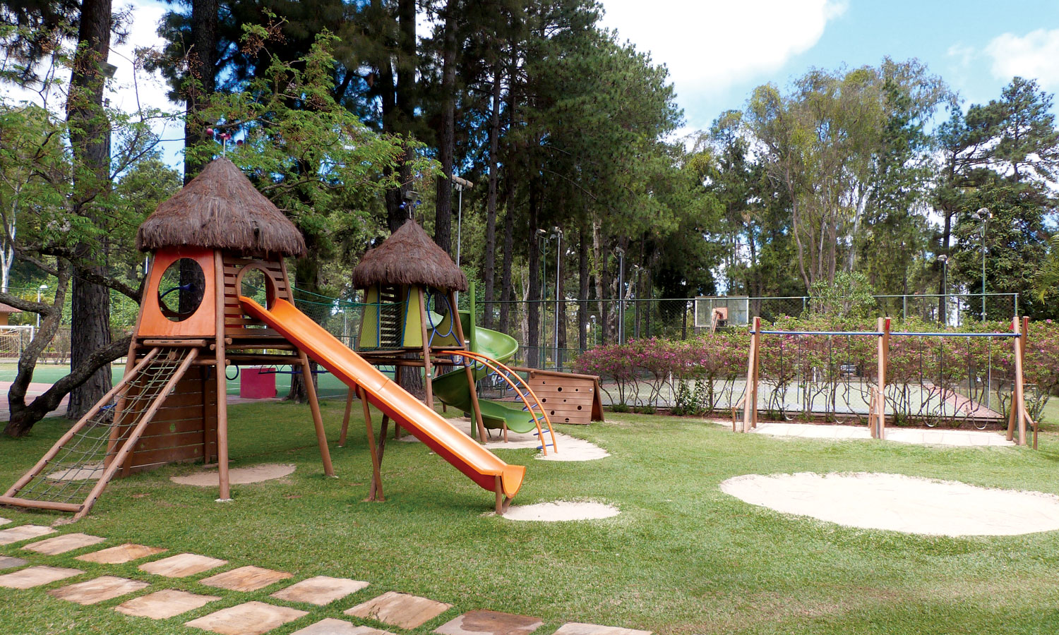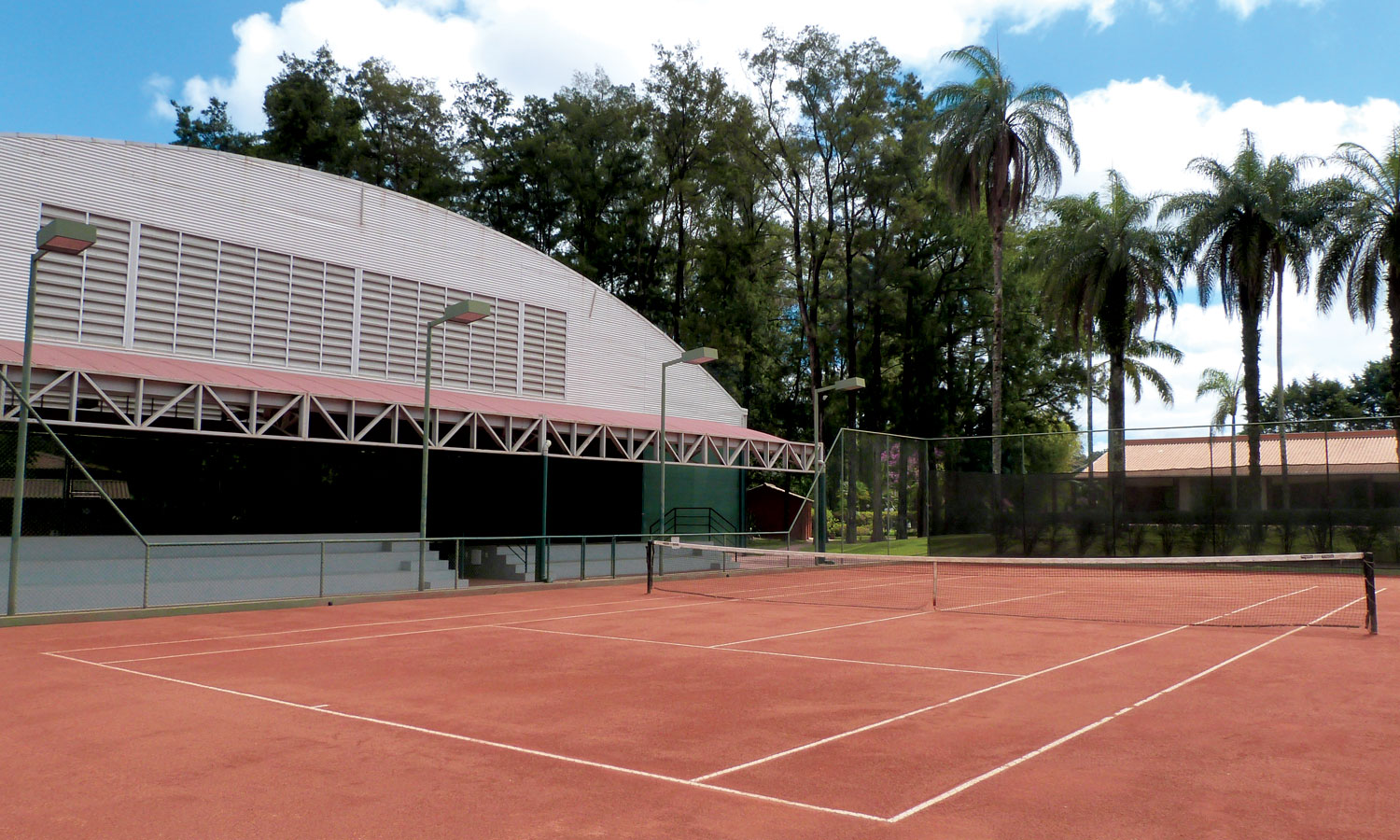 • Três quadras de tênis, três quadras de peteca, quadra de vôlei, quadra de futsal, quadra de basquete e um campo de futebol society